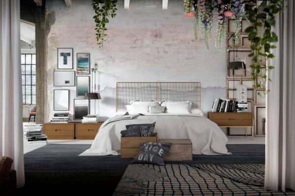 En el caso de que busques una habitación moderna y disruptiva, la combinación de forja negra y mesillas en madera natural resulta increíble. Y tú, ¿te atreves?